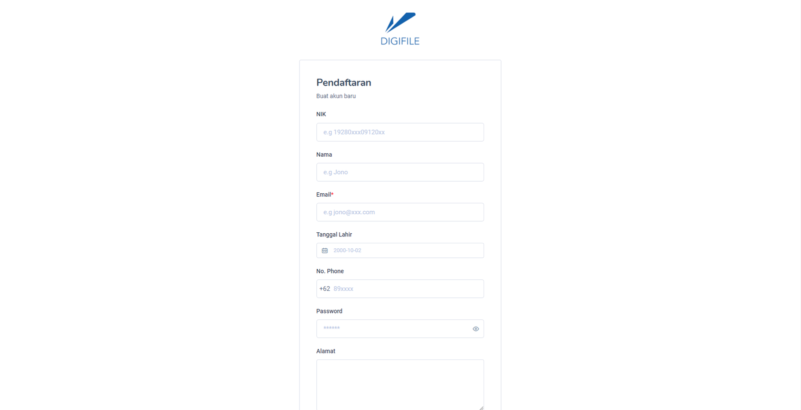 Berikut merupakan cara pembuatan akun Digifile: