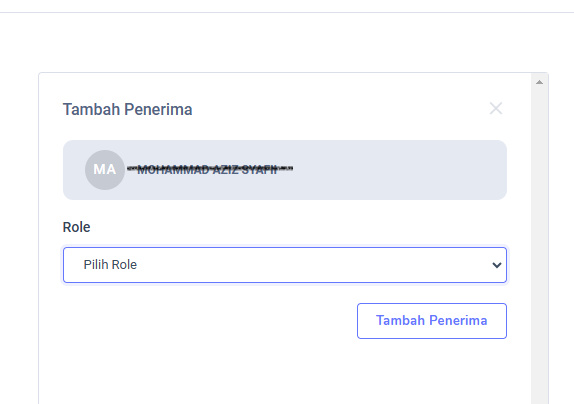 Selanjutnya menekan tombol Tambah Penerima untuk menampilkan form tambah penerima seperti berikut
