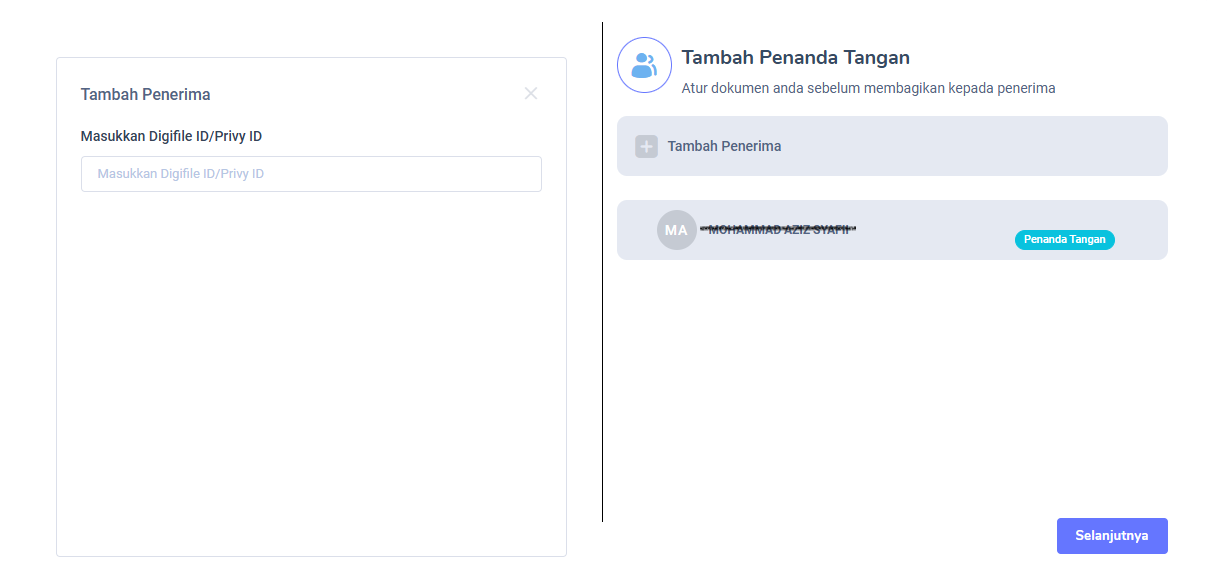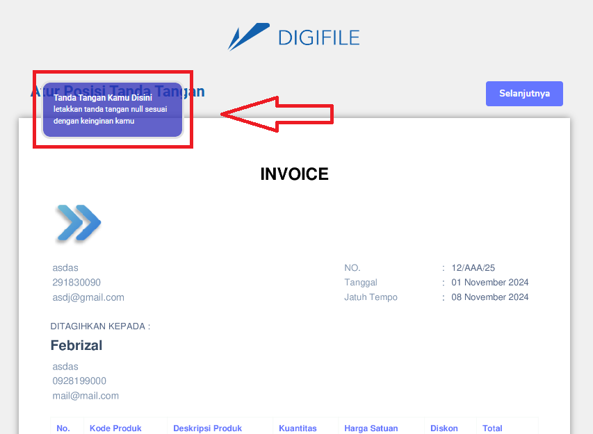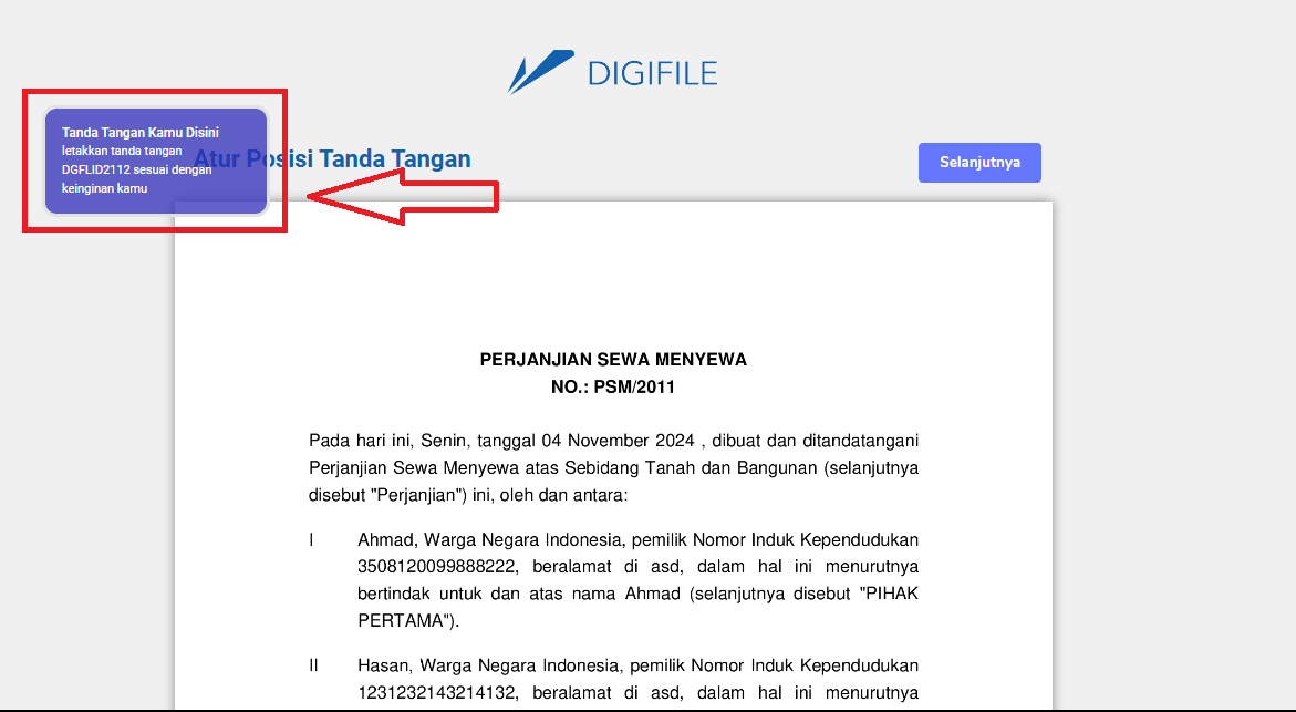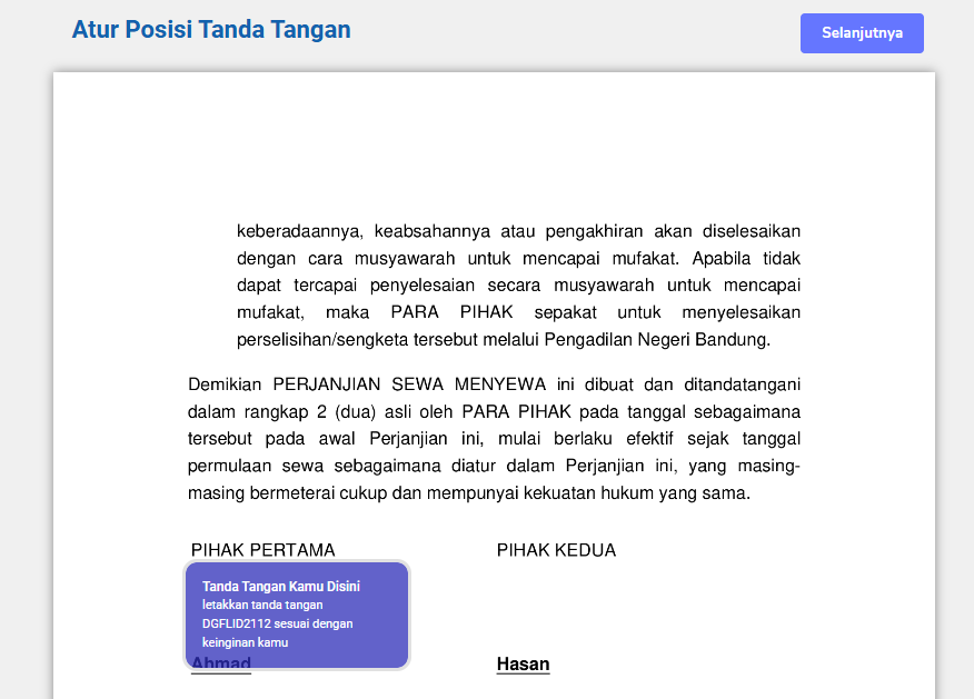 Setelah mengatur tanda tangan dengan sesuai, silahkan tekan tombol "Selanjutnya".