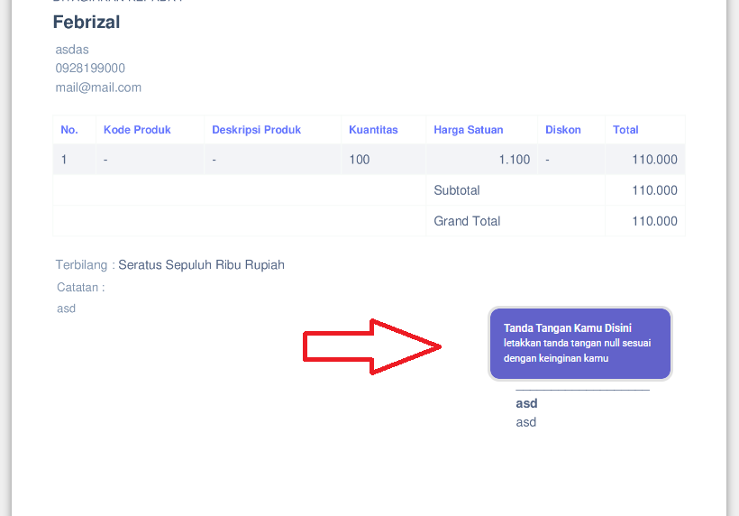 Silahkan tekan tombol "Tanda Tangan".